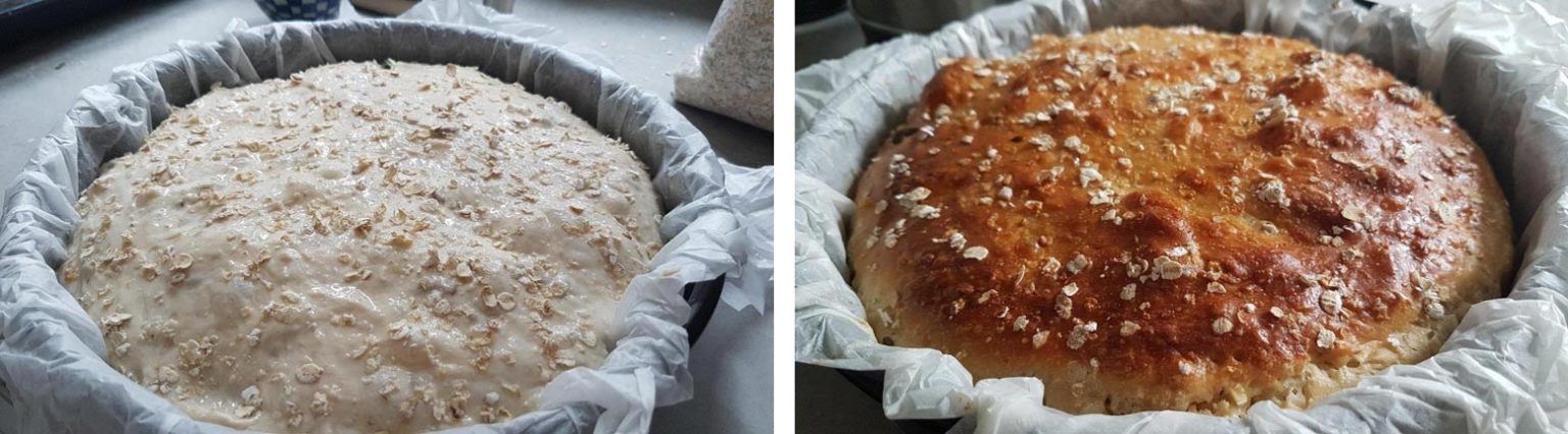 - Mix the egg white with a tablespoon of water and brush the top of the dough gently with it, then sprinkle with oats. Bake, uncovered, from a cold start at 160C fan/convection, or 180C non fan/convection oven, for 45 mins, covering if the top becomes too dark.