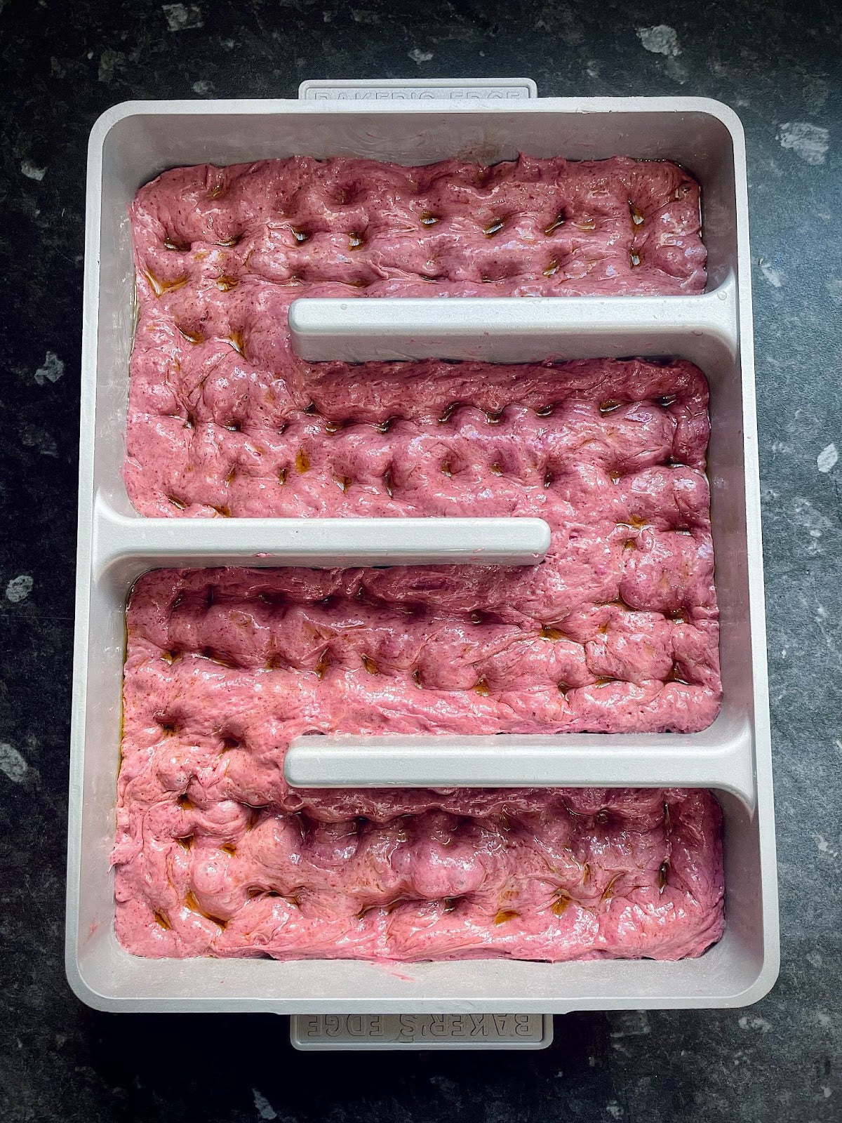 - Makes: 1 x 800g focaccia (I recommend using a 9” x 12” baking dish)