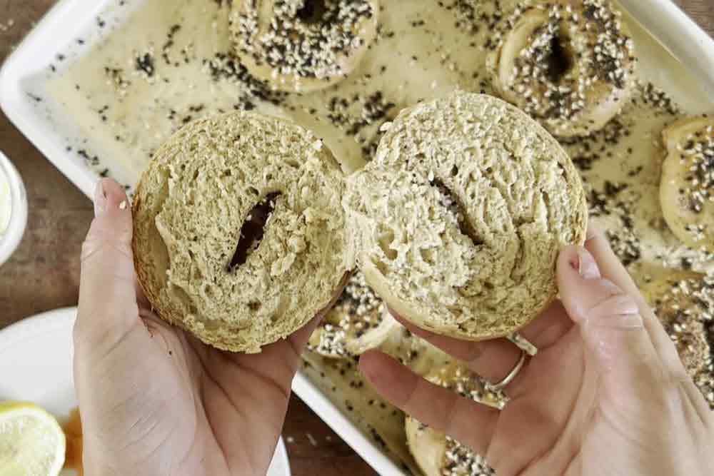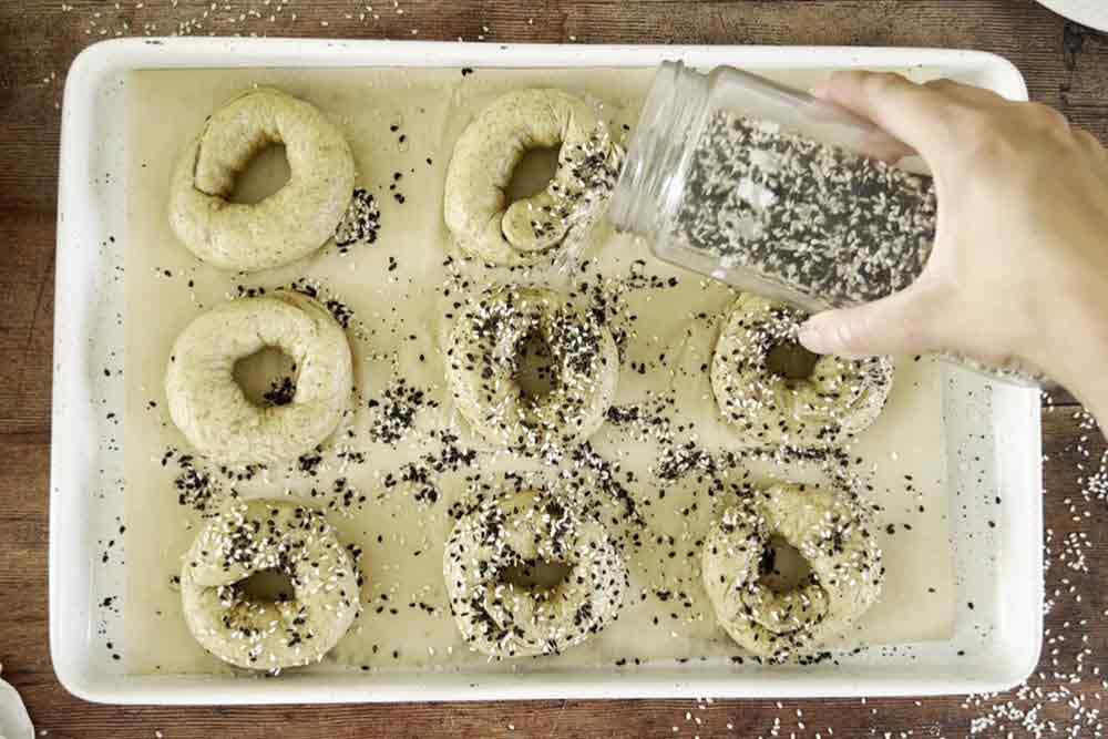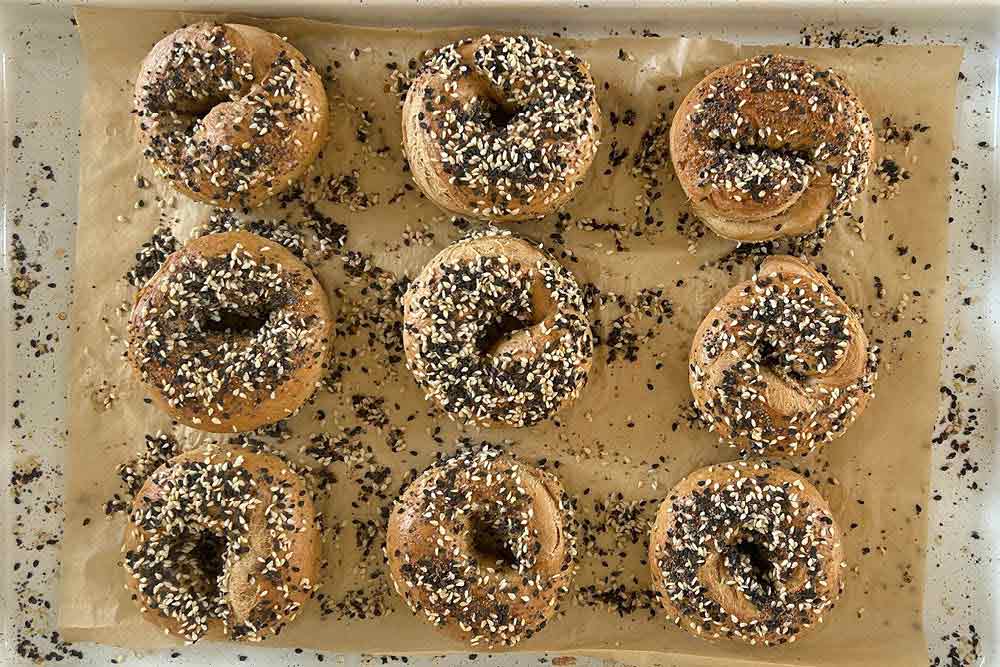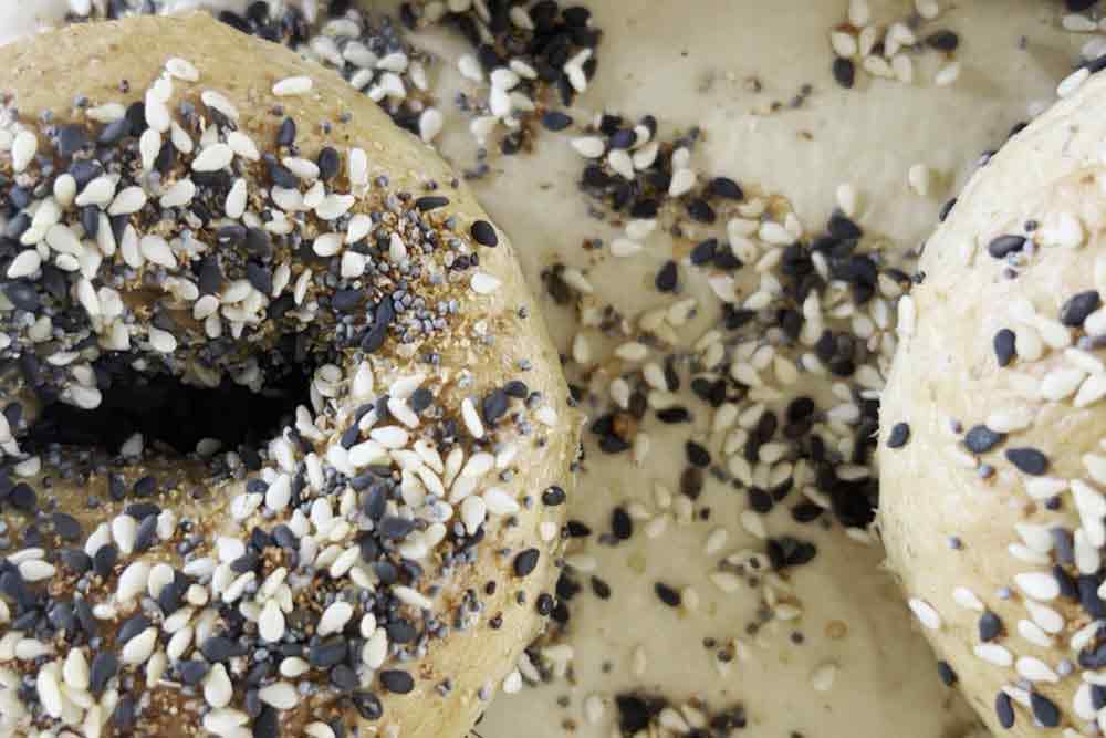 - Sprinkle with more seasoning and bake at 200 degrees Celsius (180 Fan) for 30-40 minutes, or until they’re a dark golden brown colour - enjoy with cream cheese schmear for an authentic bite!