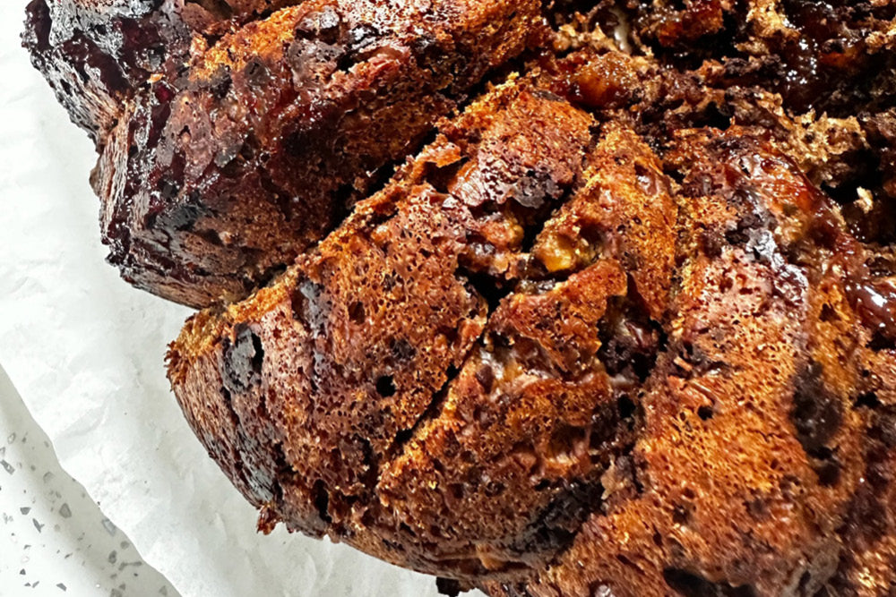 I give you a loaf of pure indulgence, made using our best-selling Cotswold Crunch flour, with added chocolate and layered with jam. This is a large loaf, I make and bake mine in a Bundt pan, but you could make it as a sandwich loaf or use a cake tin too. Eat warm and enjoy!