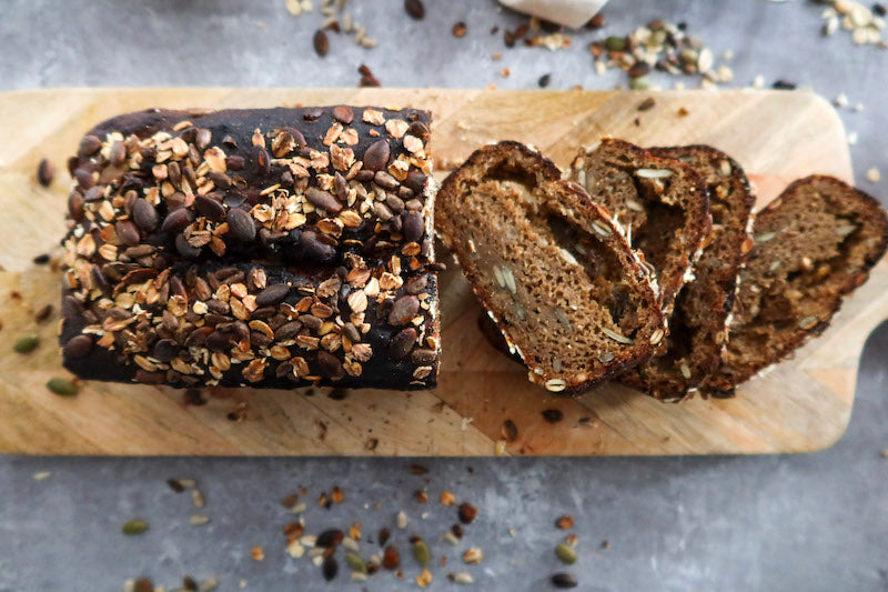 - Grease your loaf tins and coat the sides and base with rolled oats and assorted seeds. Divide your dough evenly between the two tins and top with more seeds/oats. Leave to prove again for 40 minutes