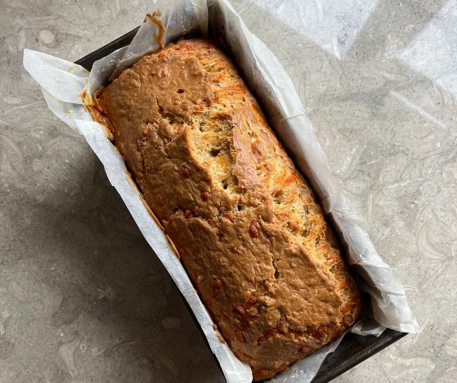 - Bake for about 45-50 minutes until the bread rises and turns golden and a toothpick inserted in the centre comes out clean. Remove from the oven and let cool for 15 minutes.