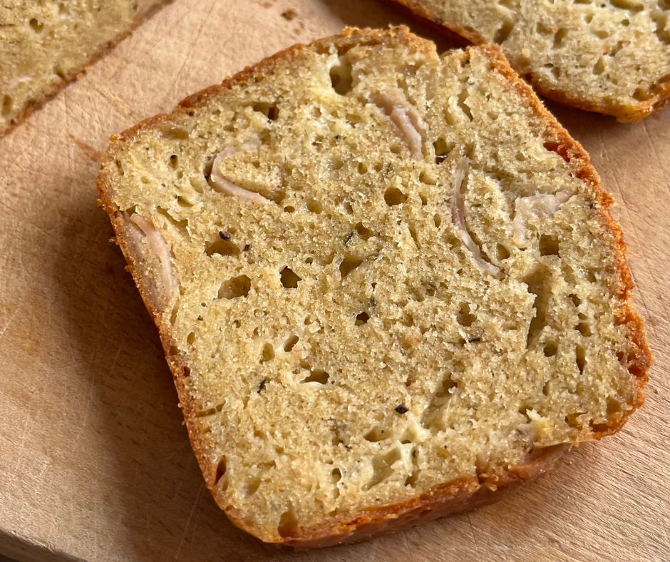 - In a large mixing bowl, whisk together the flour, baking powder, seasonings, salt and pepper. Beat the butter in a second bowl and add the egg and continue beating. Pour the mixture over the dry ingredients and mix using a spatula just until combined. Fold in cheese and ham. Transfer the dough to the prepared bread pan. Use the spatula to level the surface.