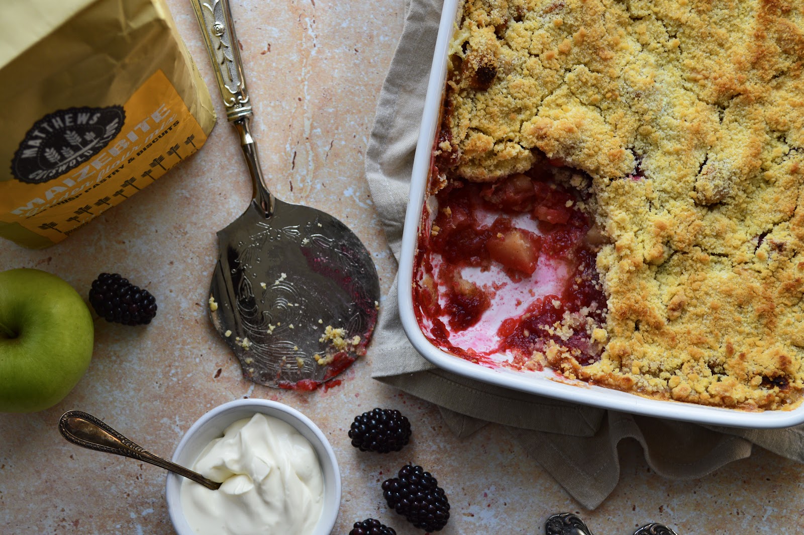 - Add the fruit to an ovenproof dish, about 24cm x 18cm.