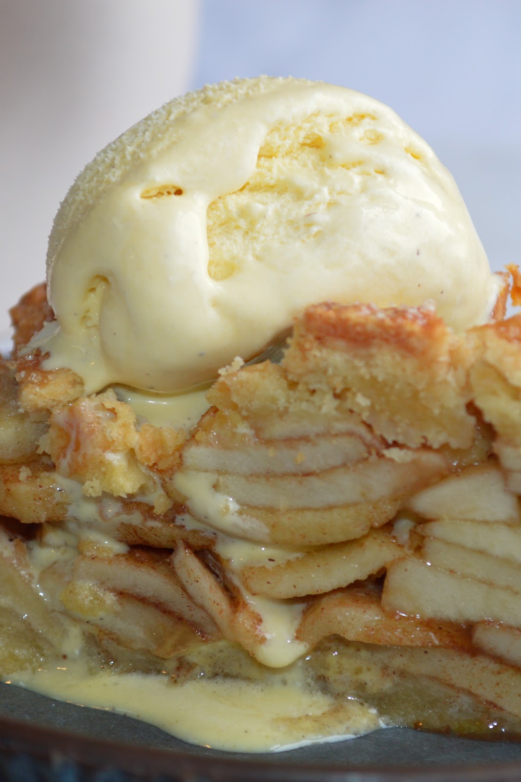 - Let it sit for 10 mins before serving warm with some vanilla ice cream.