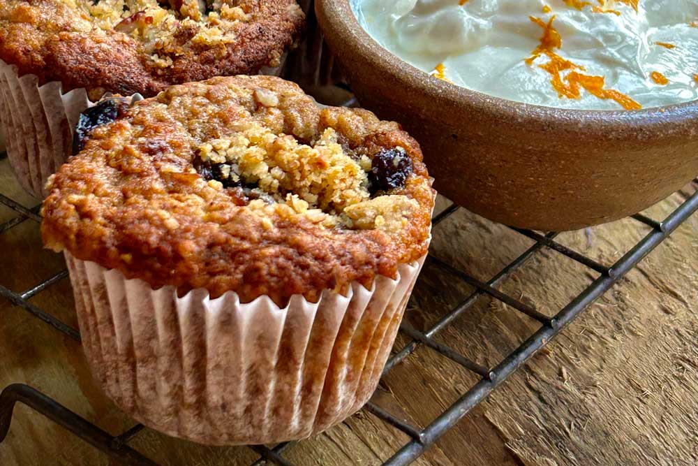 Christmas Breakfast Muffins with Pecan Crumble, Clementine Scented Yoghurt and Honey