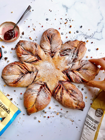 - Place the 4th piece of dough on top and don’t put any jam or chocolate on top of this piece