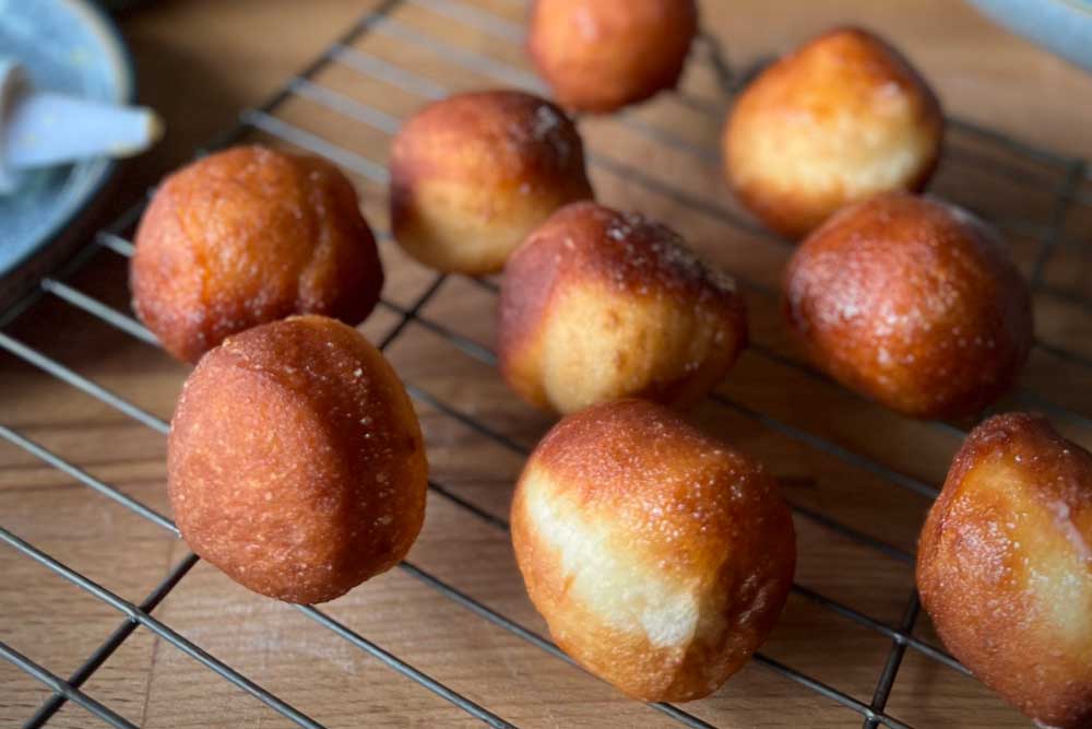 - Stir the Advocaat into the custard, pierce each doughnut piece with a knife and generously pipe in the boozy custard.