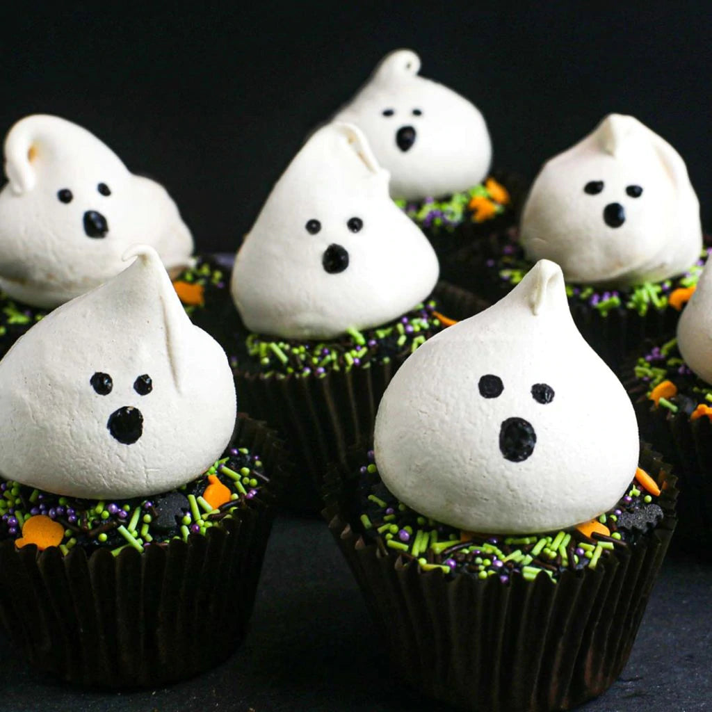 These fa-boo-lous cupcakes are perfect for getting everyone in the Halloween spirit. Using our Organic Self-Raising Flour, these rich, fluffy chocolate cakes are topped with meringue ghosts and guaranteed to cause a scream.