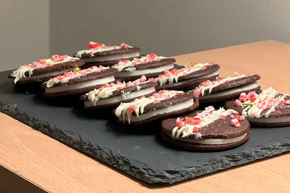 - Once the biscuits have cooled, placed your filling in between two biscuits