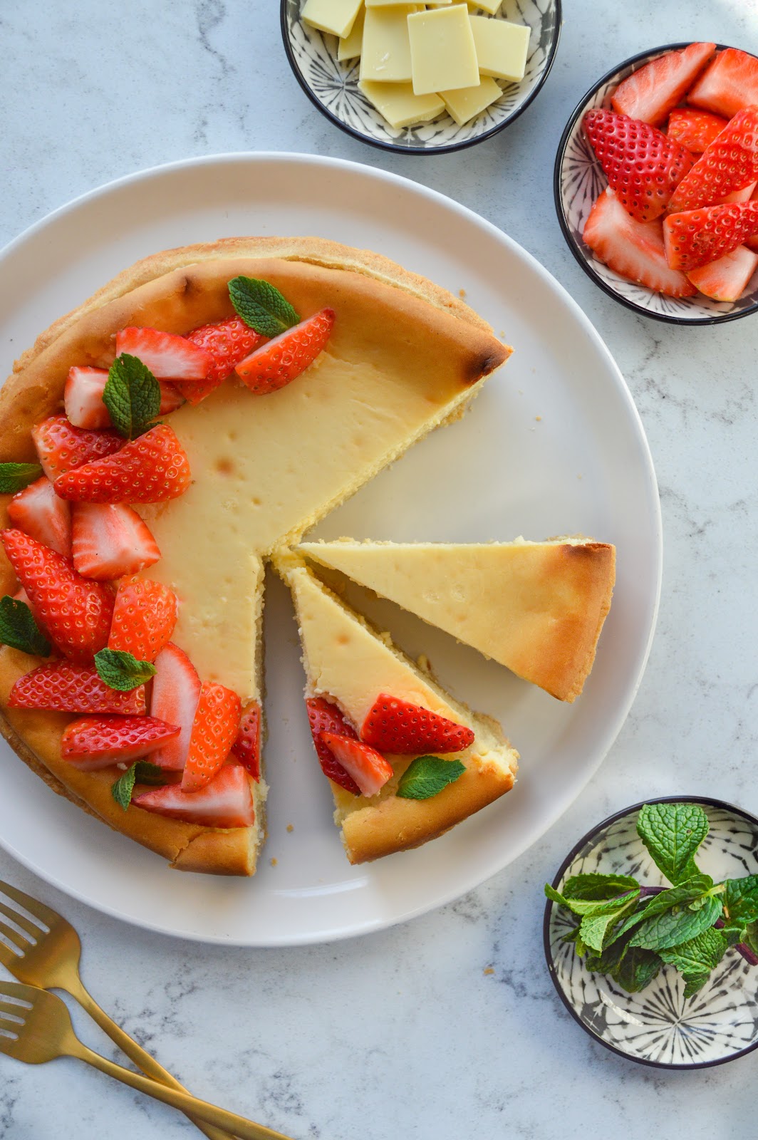 - Bake for about 60 mins or until firm but still with a wobble in the middle.