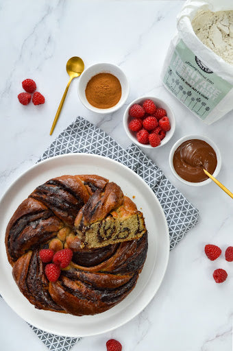 - Brush the babka with some milk and bake it in a preheated oven to 200°C / 180°C fan / gas mark 6 for about 35 mins.