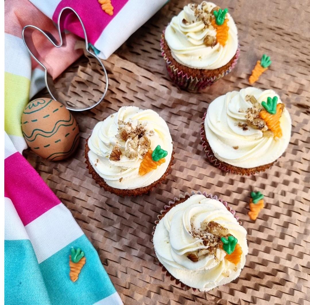 - Finish with a sprinkling of crushed walnut and a white chocolate carrot!