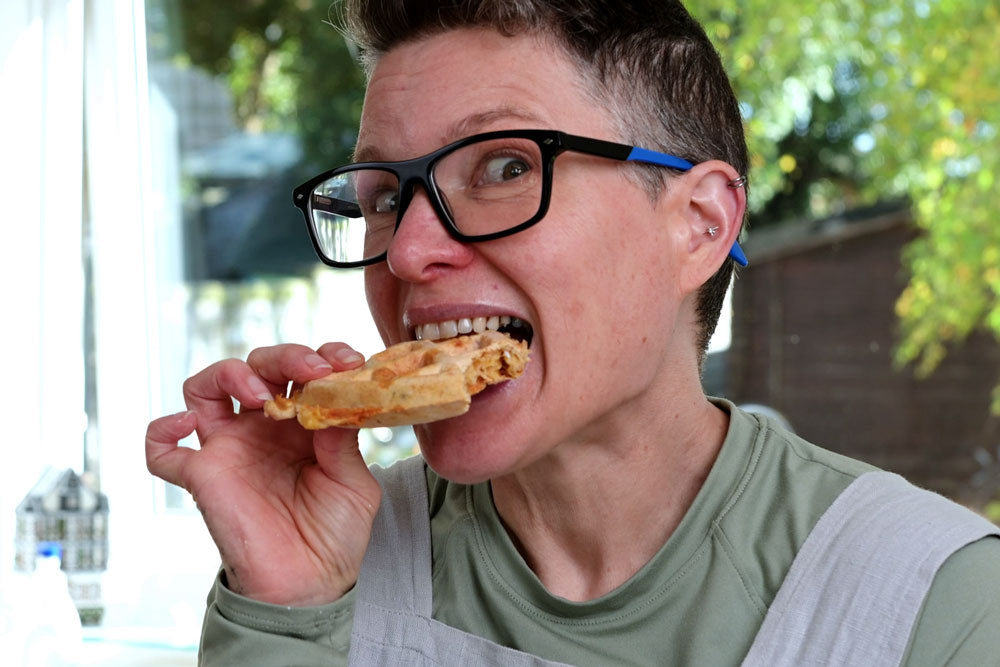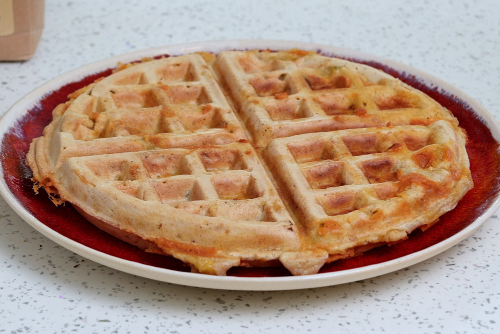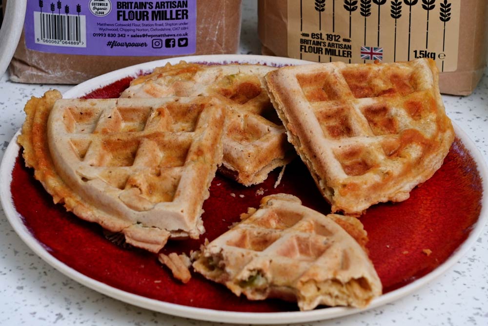 In the Cheese and Jalapeño Waffles recipe, you can substitute the flour with any flour you like. I'm using wholegrain Einkorn, but any wholegrain will work - but you can also use Plain/All-Purpose, White Spelt, or nearly anything you have in the cupboard.