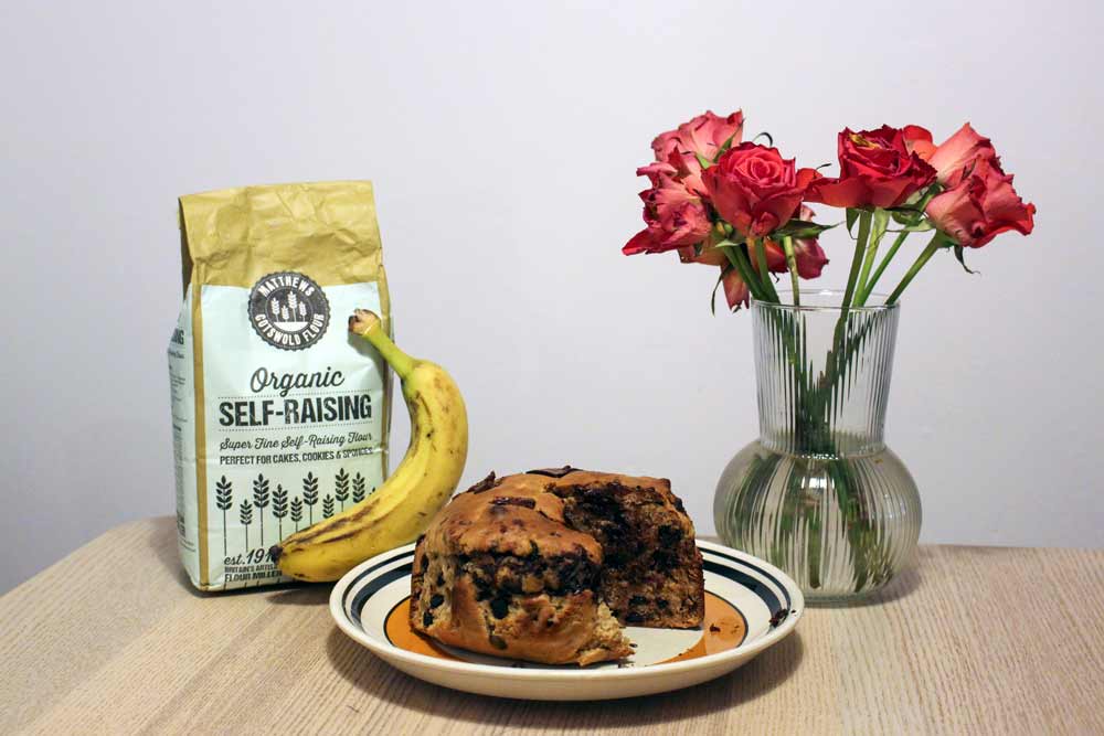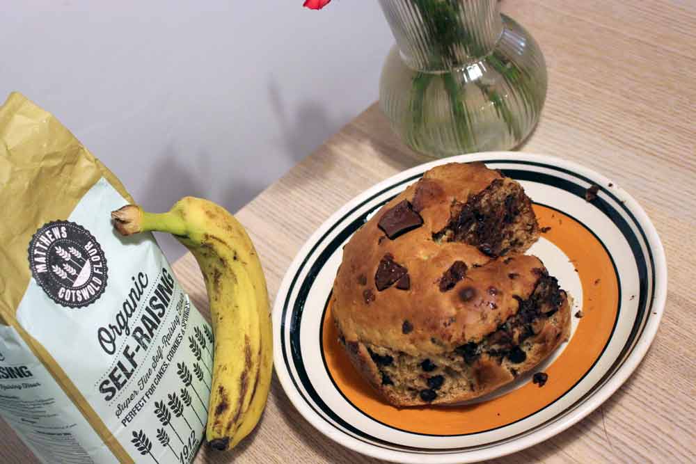 - Transfer your mixture into a cake tin/loaf tin, you can sprinkle some Chocolate Chips on top of the mixture before placing into the oven for a rustic look!