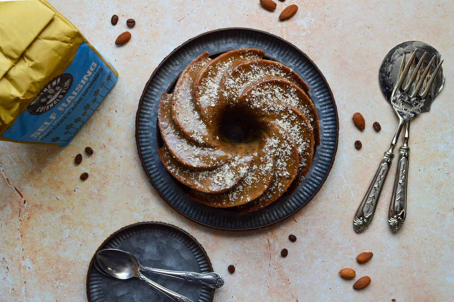 - Pour the mixture into a bundt cake tin, previously greased with some butter then covered with a thin layer of flour.
