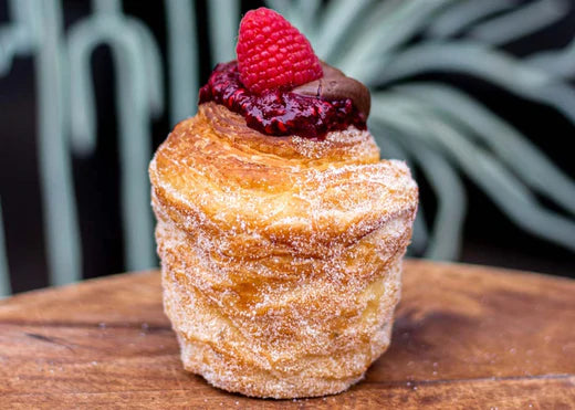Repeat rolling and folding process twice more to create buttery flaky layers. - Shaping: after final fridge rest roll the dough out to 60cm long and 20cm wide. Cut 5cm strips to make 12 cruffins. Roll up into cylinders and place in muffin tins. Prove for 2/3 hours until fluffy and jiggly.