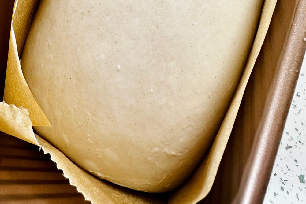 - Shape the dough for your pan (see the video for how to), cover it with your same shower cap and prove again on the counter or in the fridge. It will grow slowly. Once the dough has grown level with the edge of the pan, it’s time to bake.