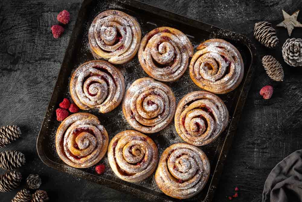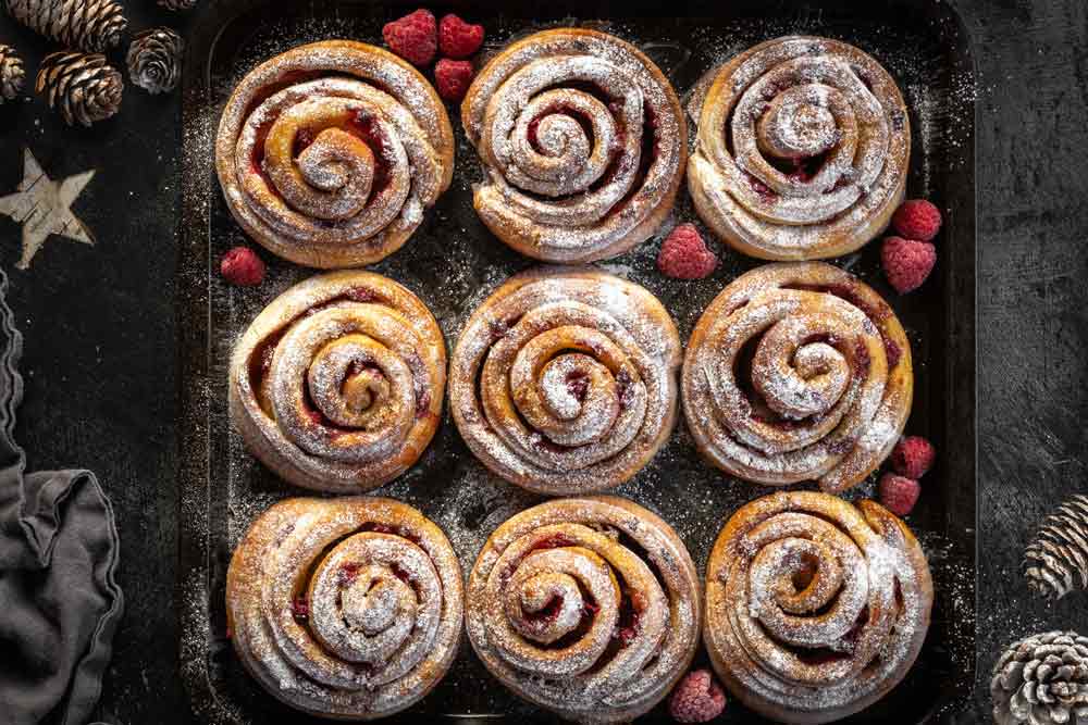 Raspberry & Vanilla Swirl Buns Baking Method: