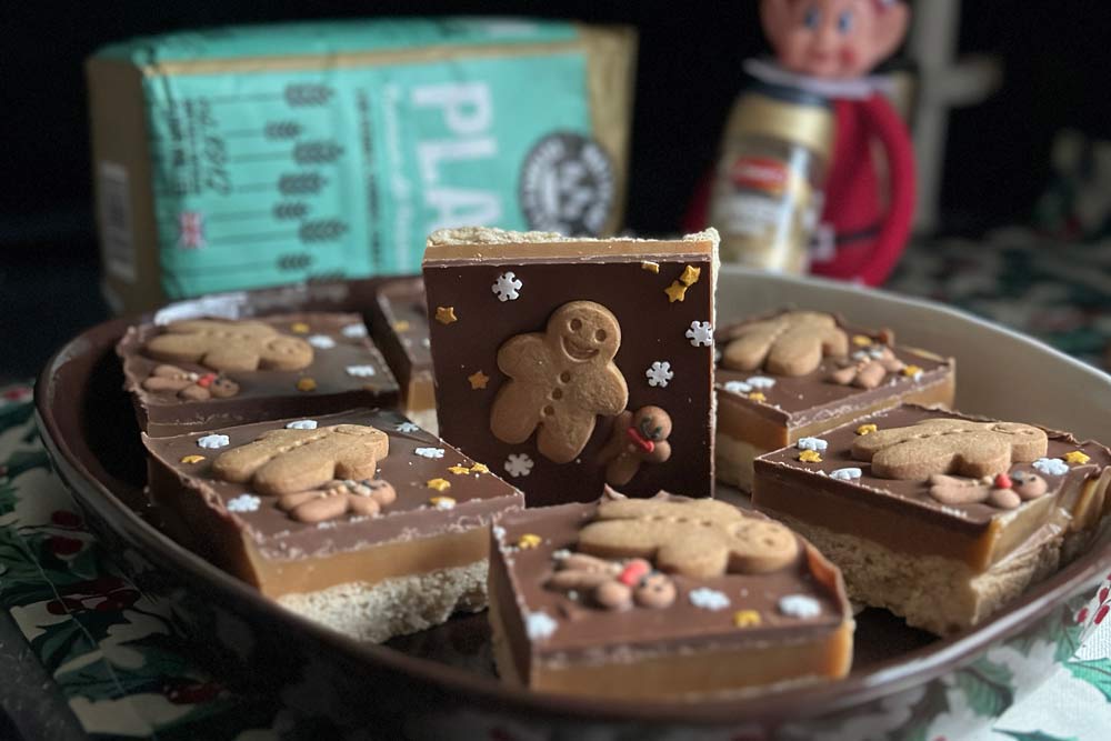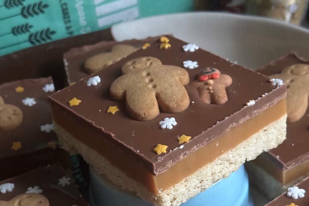 - Decorate the top with mini gingerbread men and Christmas sprinkles. Set in the fridge min 2hrs.