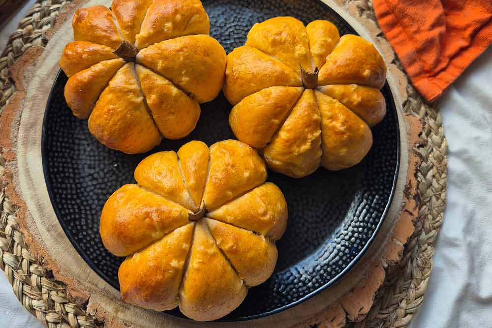 - Remove from the oven and allow to cool before cutting away the string to reveal gorgeous golden orange pumpkin buns, perfect for sharing!