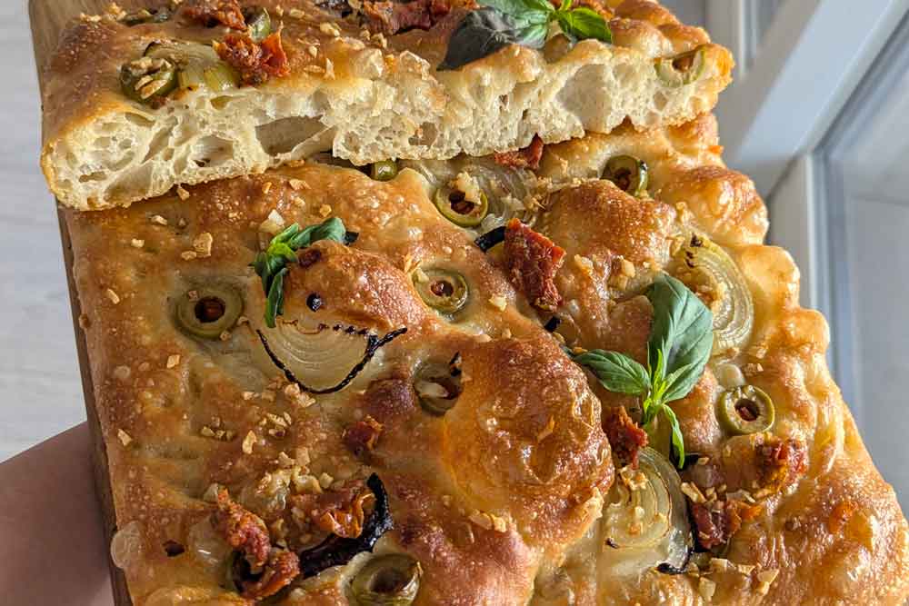 - Makes: One 9” x 13” pan of focaccia