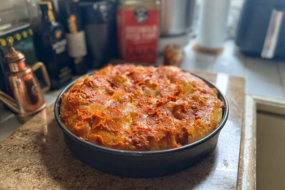 - Pan size: Baked in a 12” Lloyd Pan – 2.5” deep dish pan