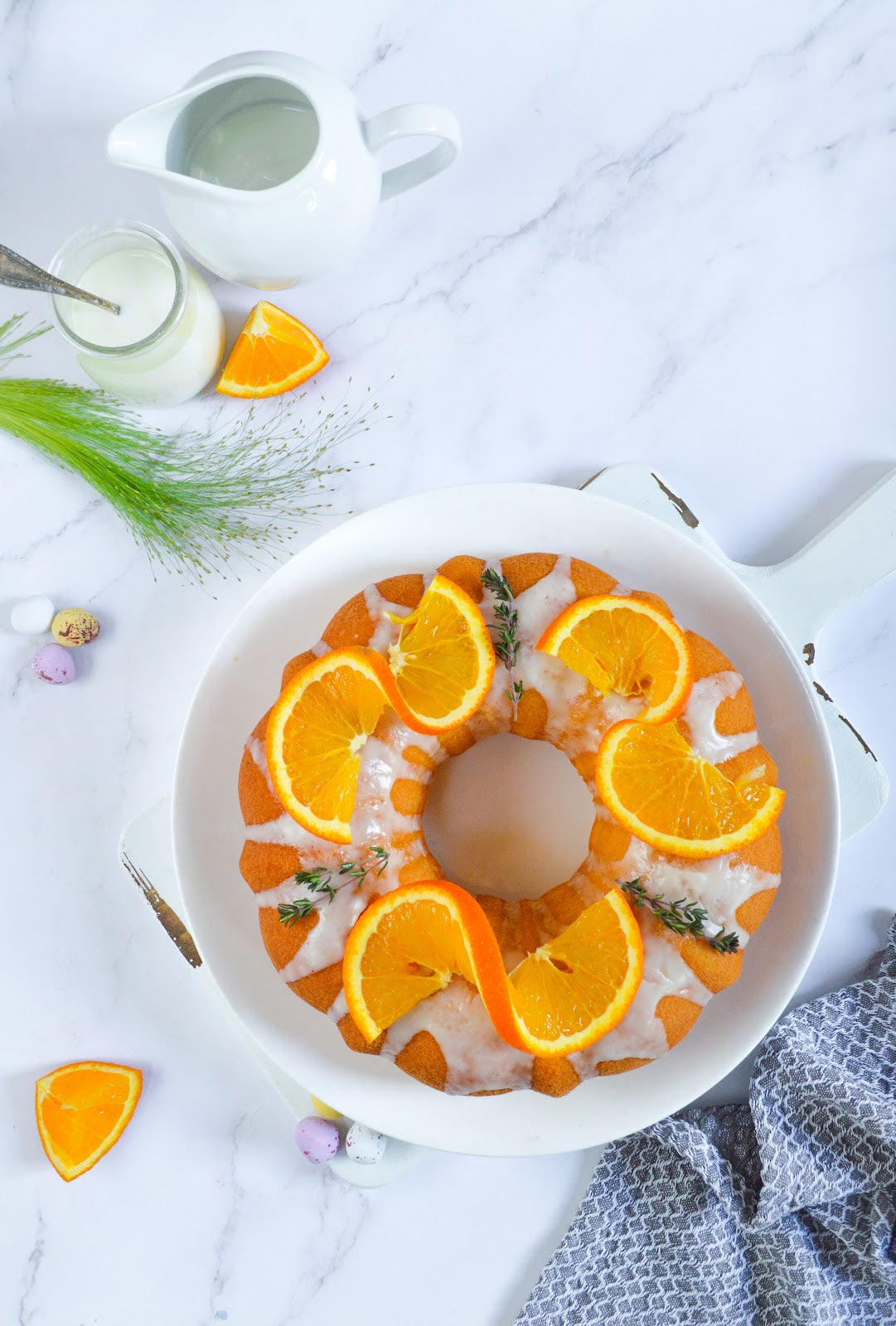 - In a large mixing bowl, add the oil, orange juice, orange blossom water, orange zest, yogurt and sugar and mix well.