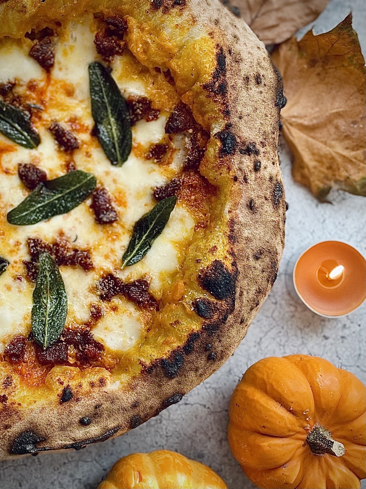 - Launch into your preheated pizza oven and cook for 60-90 seconds, rotating regularly to achieve an even bake.