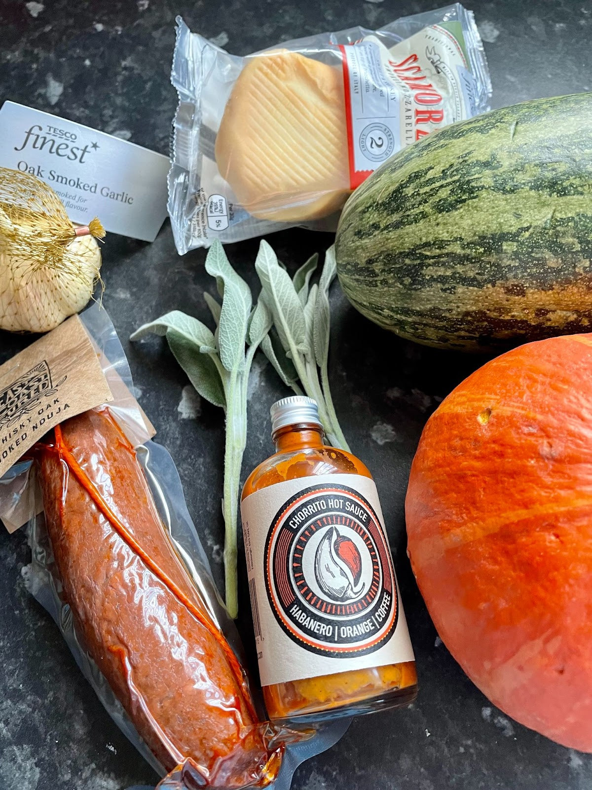 - Add the vinegar, hot sauce and roasted pumpkin and continue to cook on a medium heat for a further 3-4 mins.