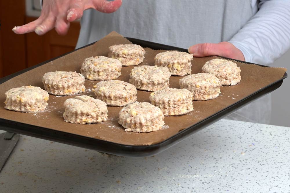Place the rounds on the prepared baking sheet. They can be placed close together as they do not spread outward. You may need to use a palette knife or spatula to lift the rounds from the counter.