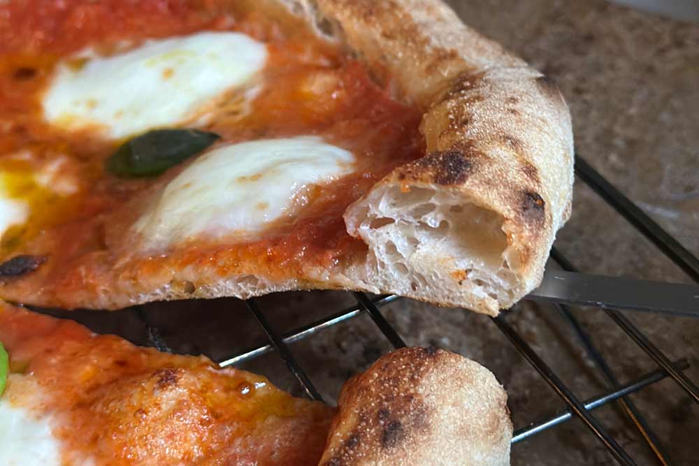 I tested this flour out using my standard Neapolitan dough recipe, fresh yeast, and 62% hydration. The results were impressive with a nice elastic dough and a light and crunchy bake, and only with a tighter crumb than normal in the crust than usual.