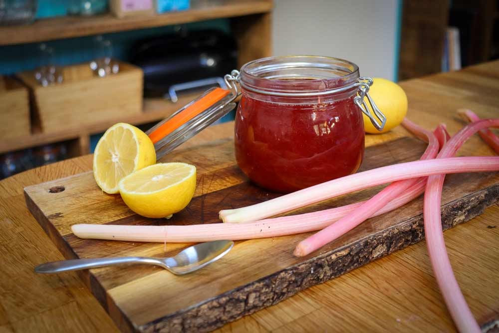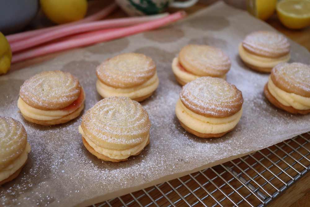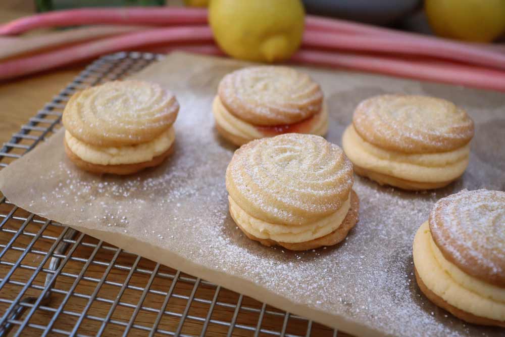 You don’t need to make your own jam for these biscuits, but they make such a nice gift and the extra jam can go into a jar to give away too (or just to keep in the fridge for yourself!). Using early forced rhubarb gives the jam such a nice pink colour, and what better combination than rhubarb and custard!