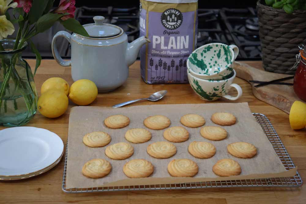 - For the biscuits, start by creaming the butter and icing sugar until really light in colour. Add the flour, cornflour, vanilla, and baking powder along with a pinch of salt. Mix again until it’s super soft and fluffy - it should almost be the consistency of a buttercream icing.