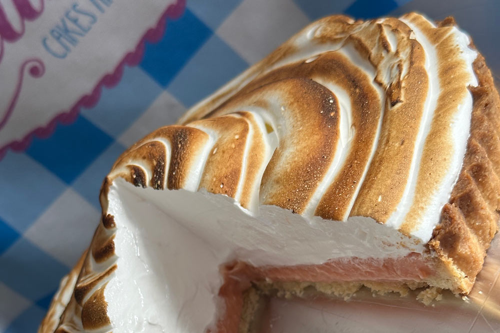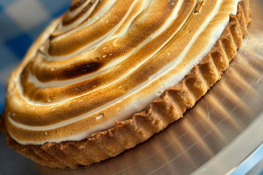 - Using a piping bag or free hand, pipe or spoon the meringue on top of the cooled Rhubarb tart. Using a chefs blow torch (or under the grill) carefully and slowly torch the top to a toasty finish. You can store in the fridge and cut up when ready to serve. Enjoy!