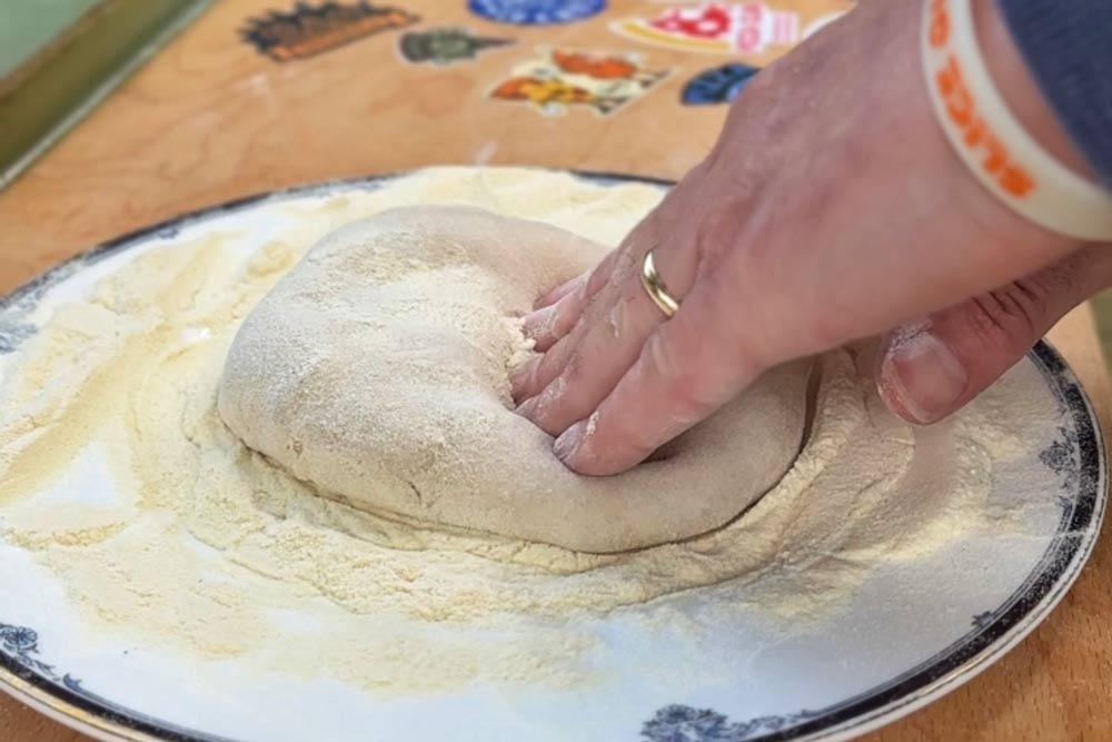 - To shape the dough ball grab it in one hand and fold it into itself a few times to make a tight, smooth ball.