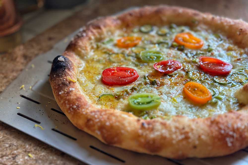 - Bake time: 4-5mins on low flame or 350°C in an Ooni pizza oven