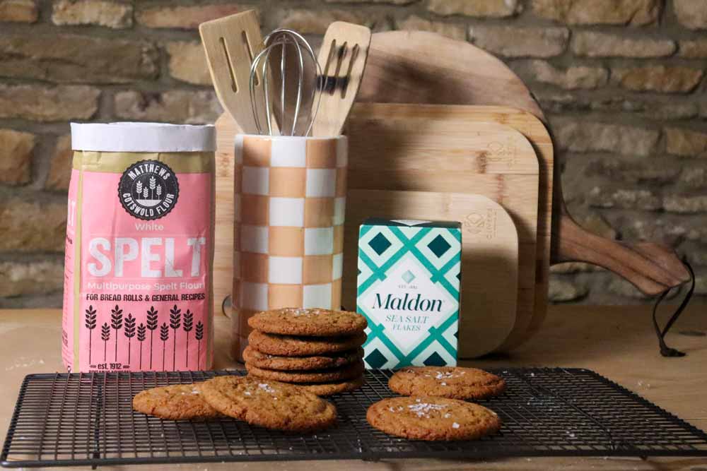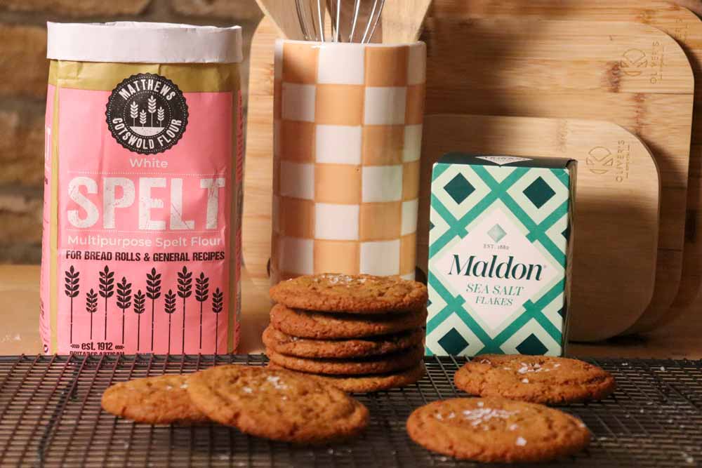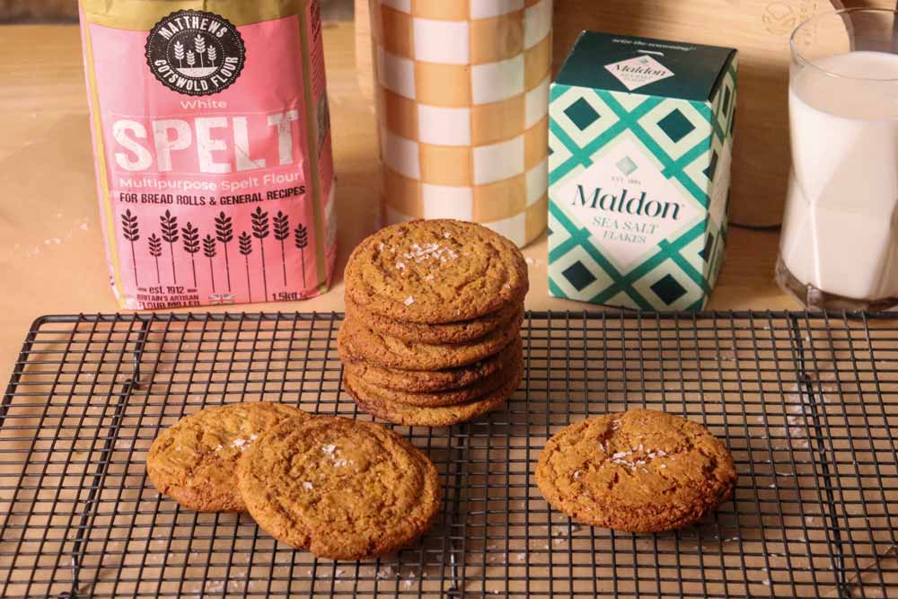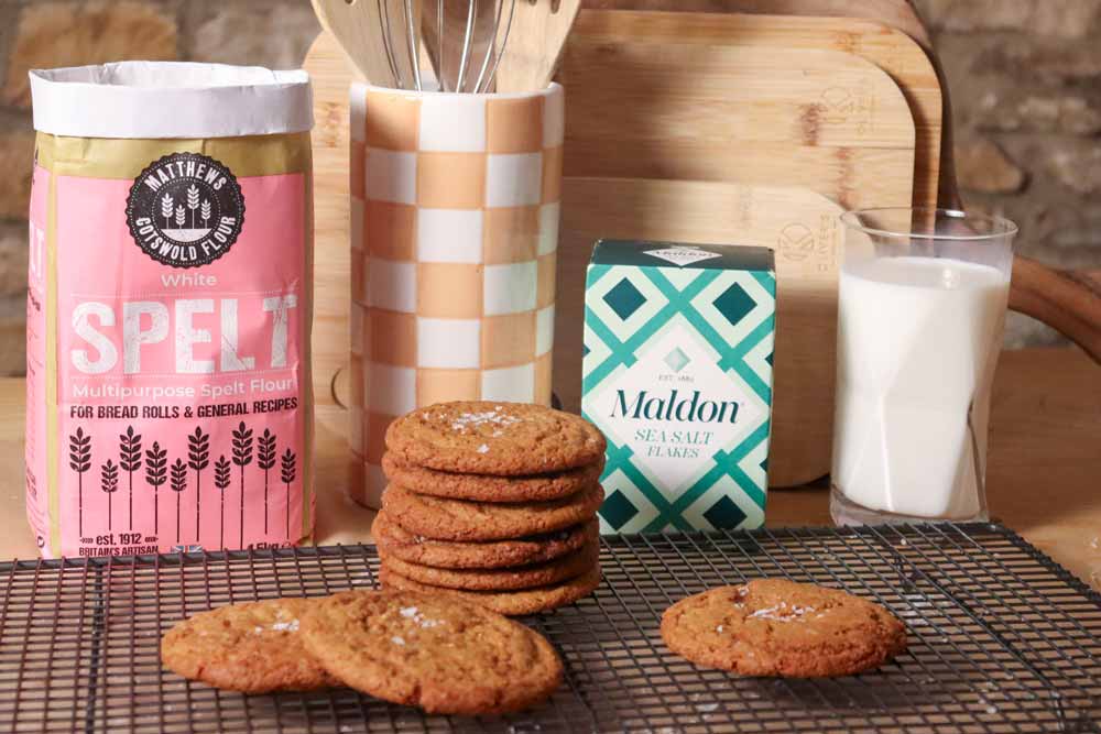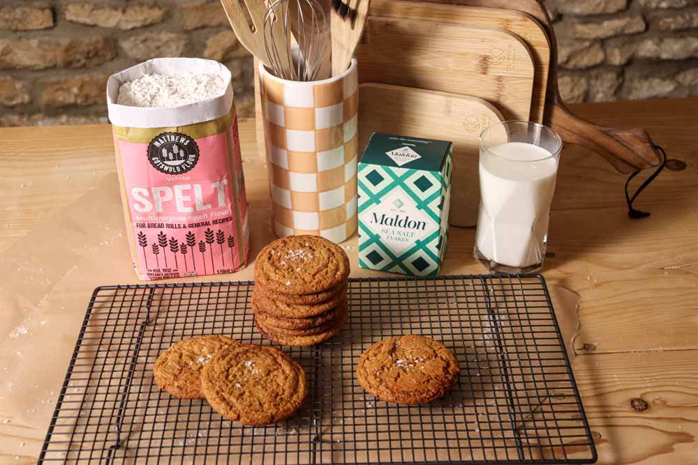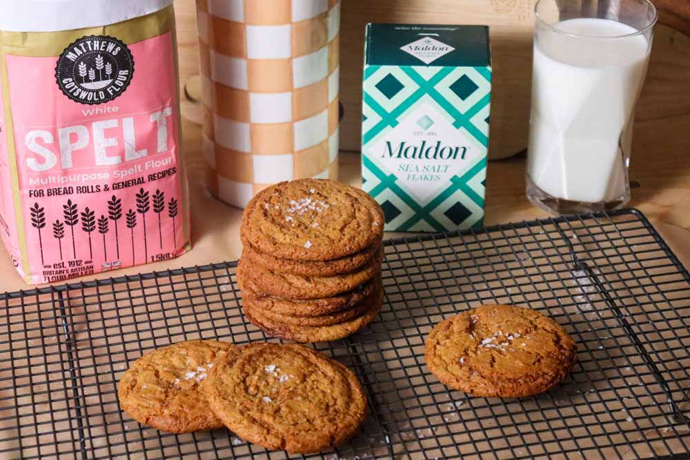 - When the cookies are lightly golden brown around the edges, remove them from the oven and sprinkle with Maldon Sea Salt Flakes.