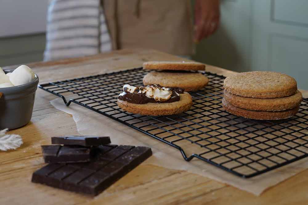 - Spread a biscuit with melted dark chocolate - or you can use one of the fantastic Sweet Spreads from our friends at Tiptree (we tried their Chocolate, Salted Caramel, and Chocolate Orange spreads on ours)