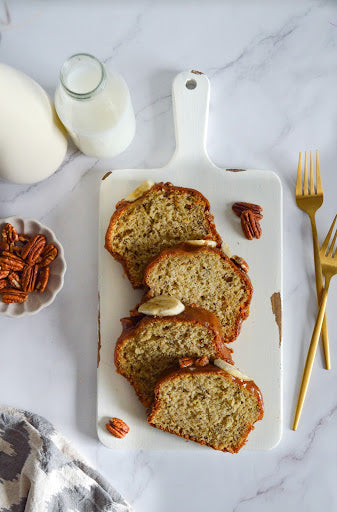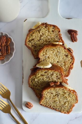 - Decorate with banana slices and pecan nuts.
