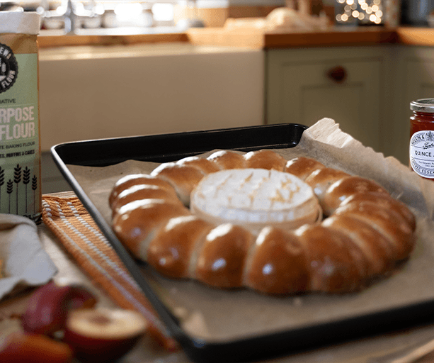 - Cover the wreath lightly and leave to rise again for a further 30 minutes before baking for 30 minutes, or until the rolls are golden brown and well risen. If you are adding a baked camembert, add this to the centre of your wreath halfway through the baking to avoid it bursting