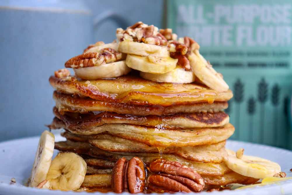 Make 12 pancakes in just 30 mins from pack to plate. Light and fluffy, delicious with sweet or savoury toppings, made with Matthews All Purpose Regenerative White Flour!