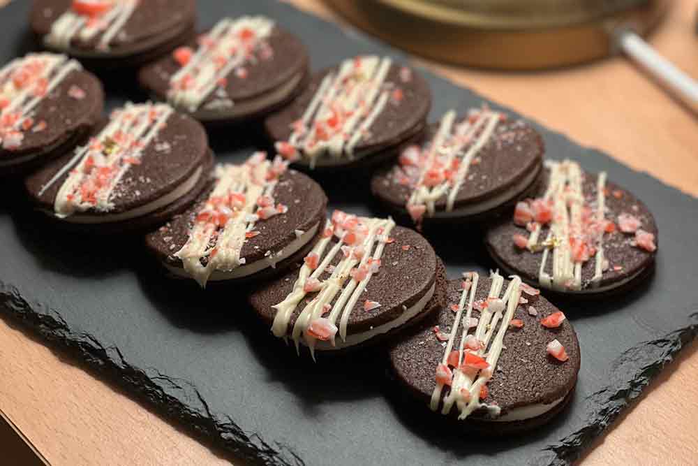 - Once the biscuits have cooled, placed your filling in between two biscuits