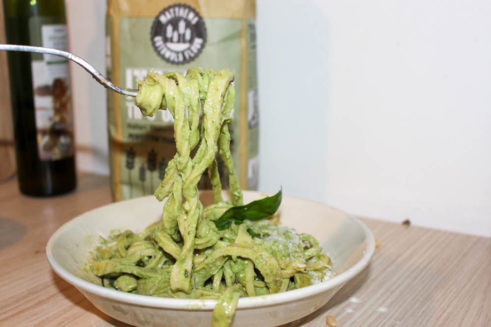 "This delicious fresh pasta is made with only two ingredients - flour and eggs. Complimented with my rich and tasty homemade pesto. The perfect homemade meal and tastes so much better than store bought pesto!"