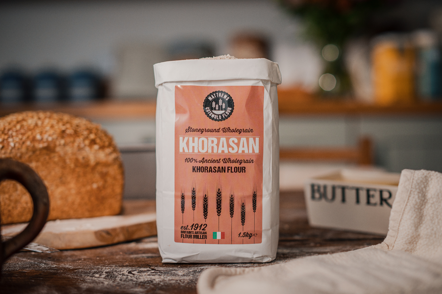 Khorasan is referred to as an ancient wholegrain its origins are said to go back to the Egyptians. It has a delicious creamy yellow, slightly clumpy with a clean buttery flavour. The Matthews family source Khorasan grain from remote farms in Italy then traditionally stoneground mill so that the nutritious outer layer of the bran is left intact. A courser wholemeal flour perfect for blending into sourdough recipes, flat breads, wholegrain pasta, brownies and biscuits. Khorasan can absorb around 25% more water than wheat flour, compensate your recipe by adding more liquid. Checkout @cotswoldflour for inspiration.