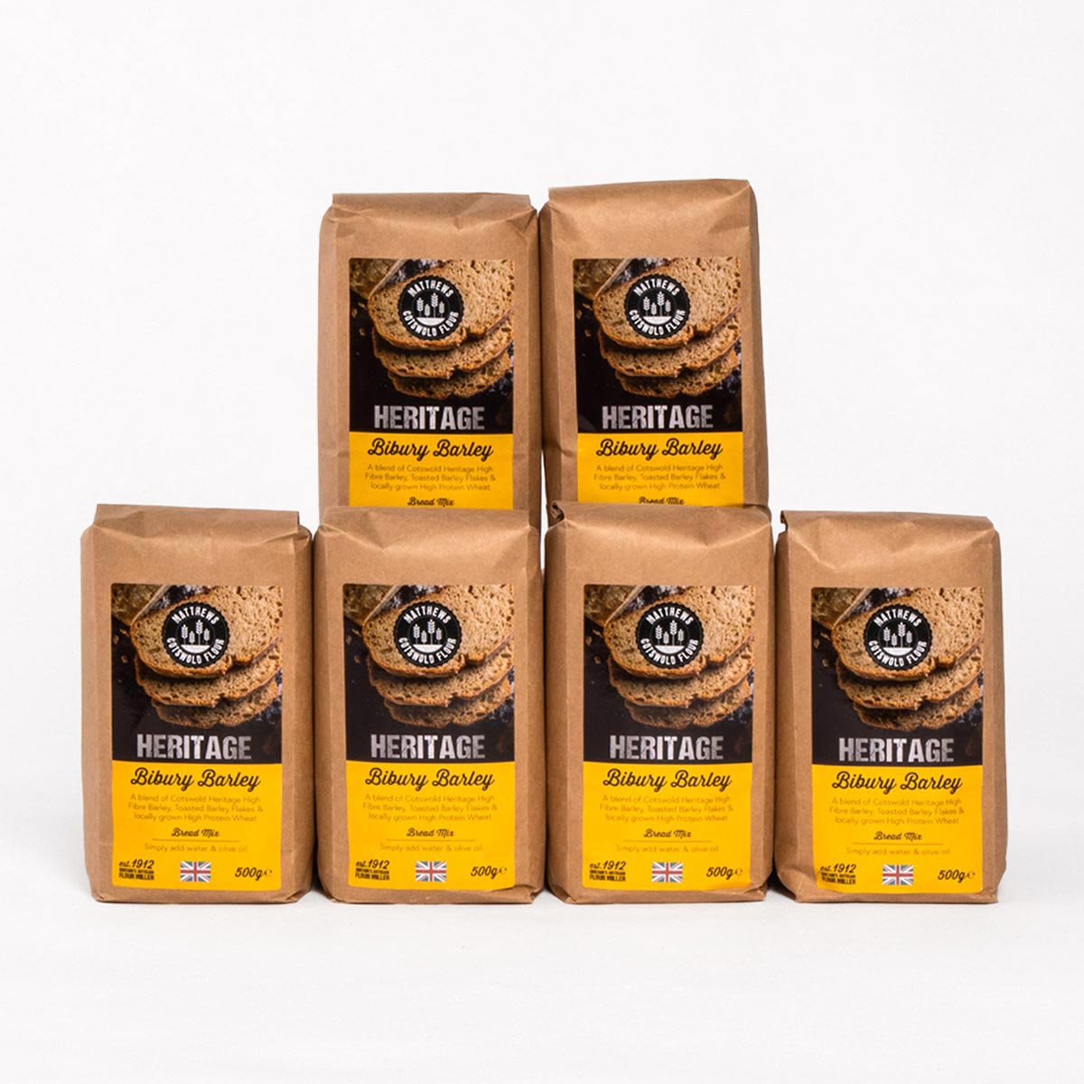 This pack comes with 6 Heritage Bibury Barley bread mixes.
